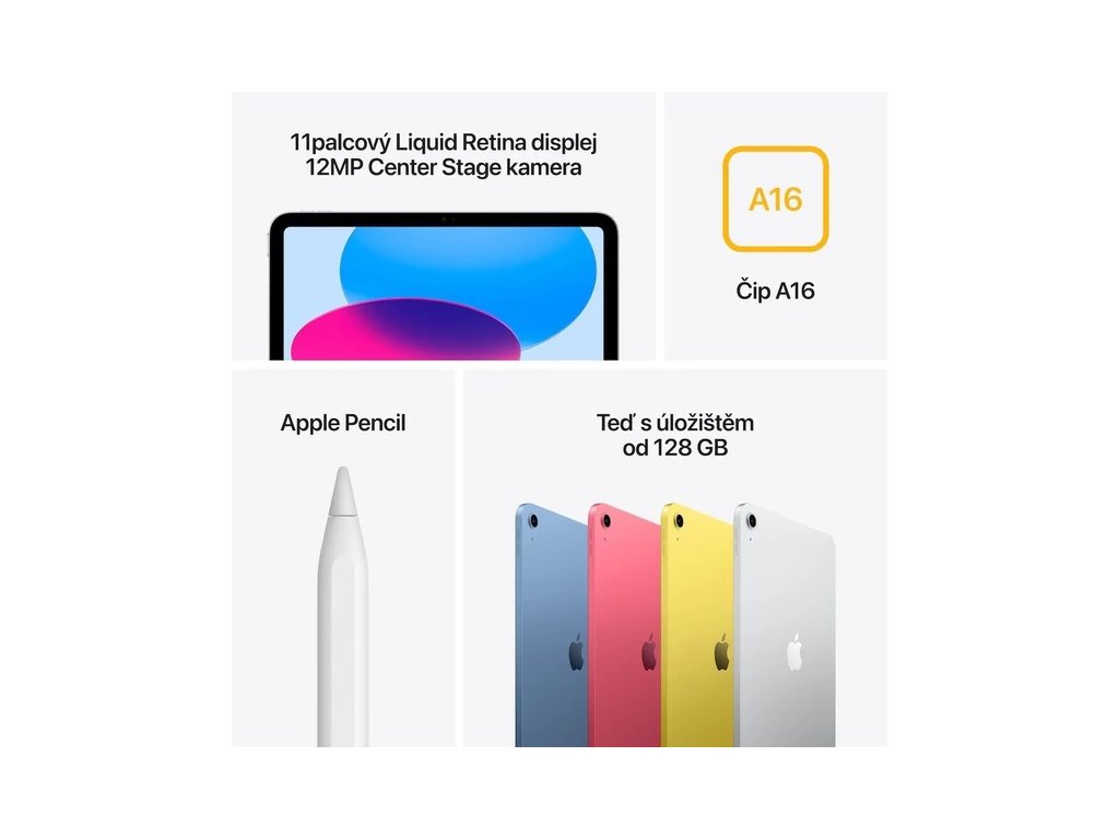 iPad se superrychlým čipem A16 a úložištěm začínajícím na 128 GB toho teď dokáže ještě víc. Na jeho nádherném 11palcovém Liquid Retina displeji se krásně pracuje, tvoří a dělá cokoli dalšího, co tě baví. A s praktickými doplňky navrženými přímo pro iPad se z něj stane ještě všestrannější zařízení na každodenní činnosti.