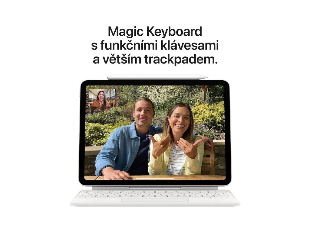 - Apple Pencil Pro posouvá tvorbu na vyšší úroveň. Magic Keyboard teď má řádek 14 funkčních kláves a větší trackpad.