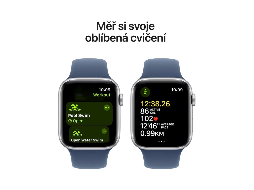 Apple Watch SE (2024) Cellular 40mm Stříbrný hliník s denimovým sportovním řemínkem M/L