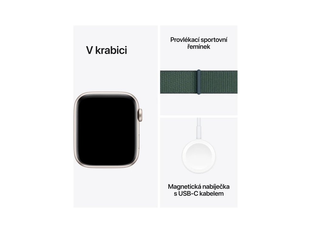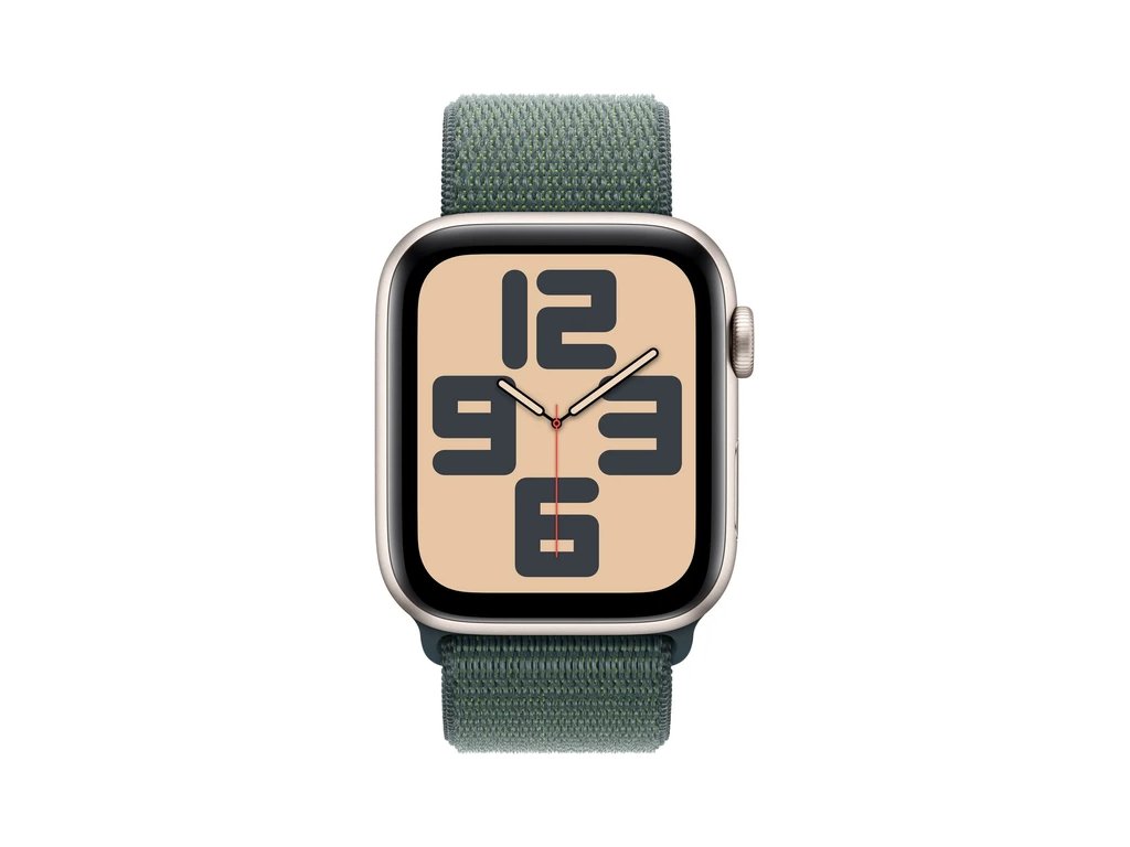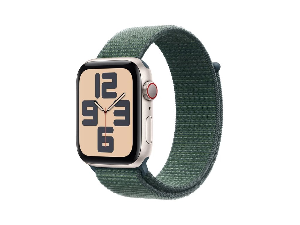 Apple Watch SE (2024) Cellular 44mm Hvězdně bílý hliník s jezerně zeleným provlékacím řemínkem