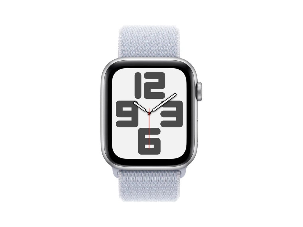 Apple Watch SE (2024) Cellular 44mm Stříbrný hliník s oblačně modrým provlékacím řemínkem
