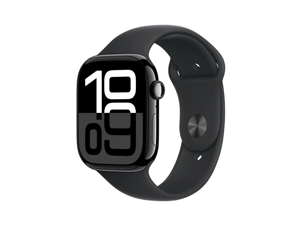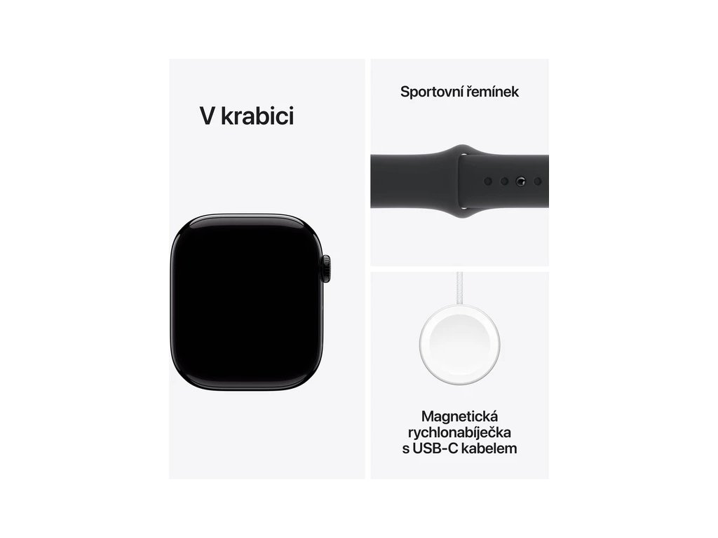 Apple Watch Series 10 42mm Klavírně černý hliník s černým sportovním řemínkem S/M