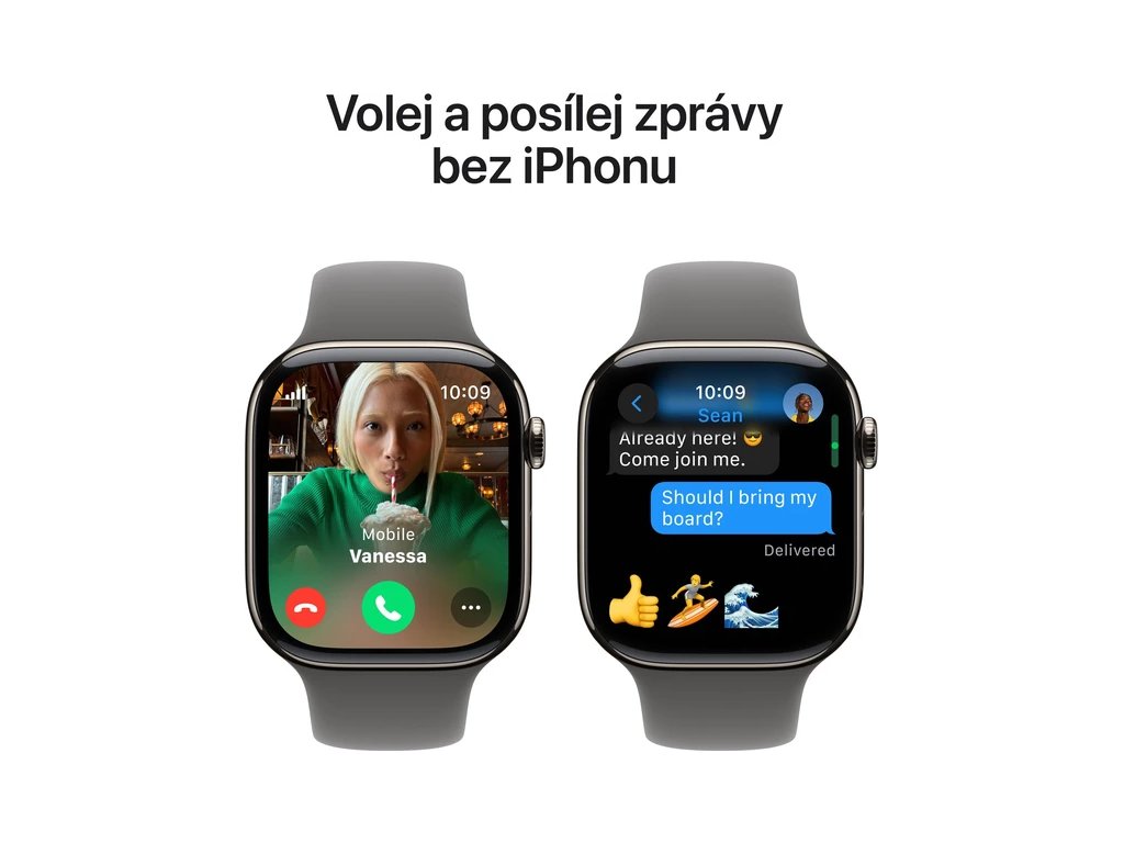 Vůbec poprvé si můžeš vybrat ze tří variant leštěného leteckého titanu, který je krásný, zrcadlově lesklý a hodně vydrží. A díky jeho vynikajícímu poměru pevnosti k hmotnosti jsou Series 10 skoro o 20 % lehčí než Series 9 v provedení z nerezové oceli. Ale pořád mimořádně odolné.