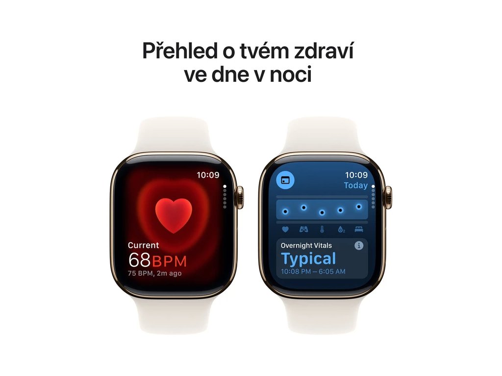 Vůbec poprvé si můžeš vybrat ze tří variant leštěného leteckého titanu, který je krásný, zrcadlově lesklý a hodně vydrží. A díky jeho vynikajícímu poměru pevnosti k hmotnosti jsou Series 10 skoro o 20 % lehčí než Series 9 v provedení z nerezové oceli. Ale pořád mimořádně odolné.