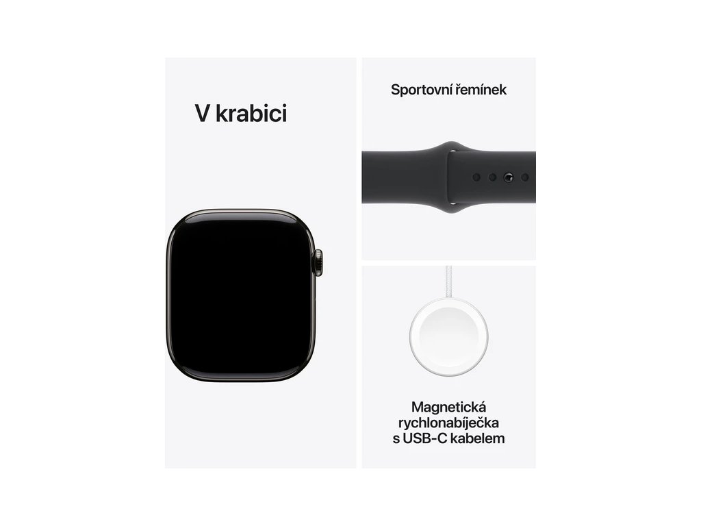 Apple Watch Series 10 Cellular 46mm Břidlicově šedý titan s černým sportovním řemínkem M/L