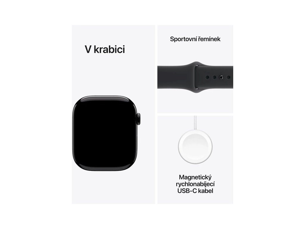 Apple Watch Series 11 (42mm) Klavírně černý hliník s černým sportovním řemínkem S/M