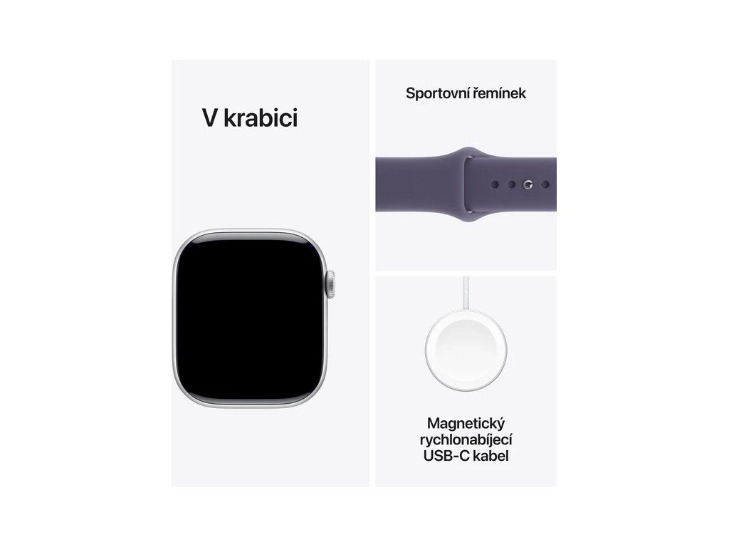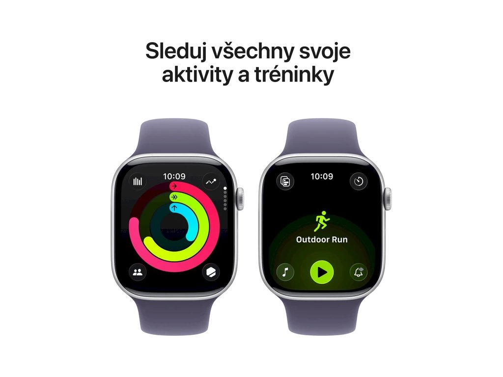 Apple Watch Series 11 Cellular (46mm) Stříbrný hliník s mlžně fialovým sportovním řemínkem M/L