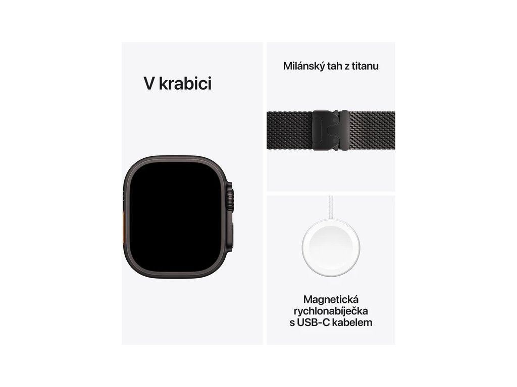 Apple Watch Ultra 2 49mm Černý titan s černým titanovým milánským tahem L