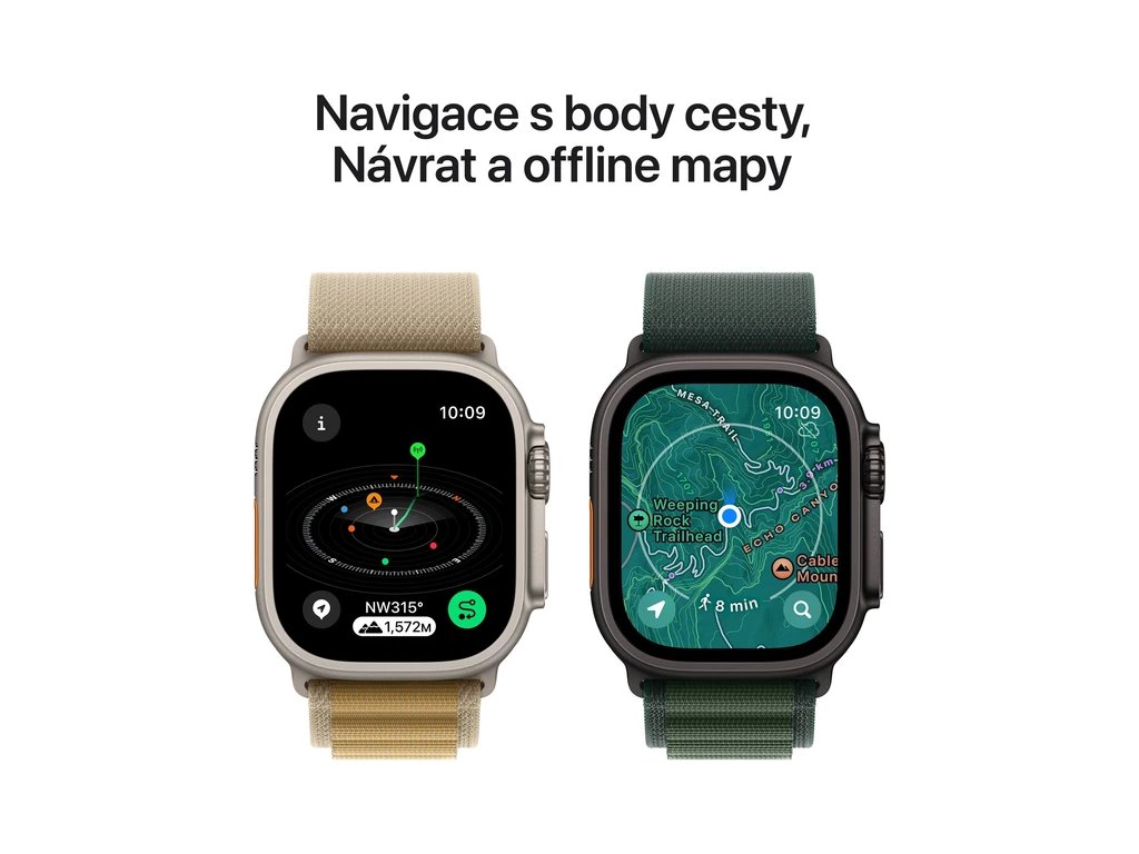Hodinky Apple Watch Ultra 2 jsou navržené tak, aby zvládly širokou škálu prostředí, nadmořských výšek a teplot, a jsou tak základním průzkumným nástrojem, který tě dostane všude. A pomůže ti dostat se domů.