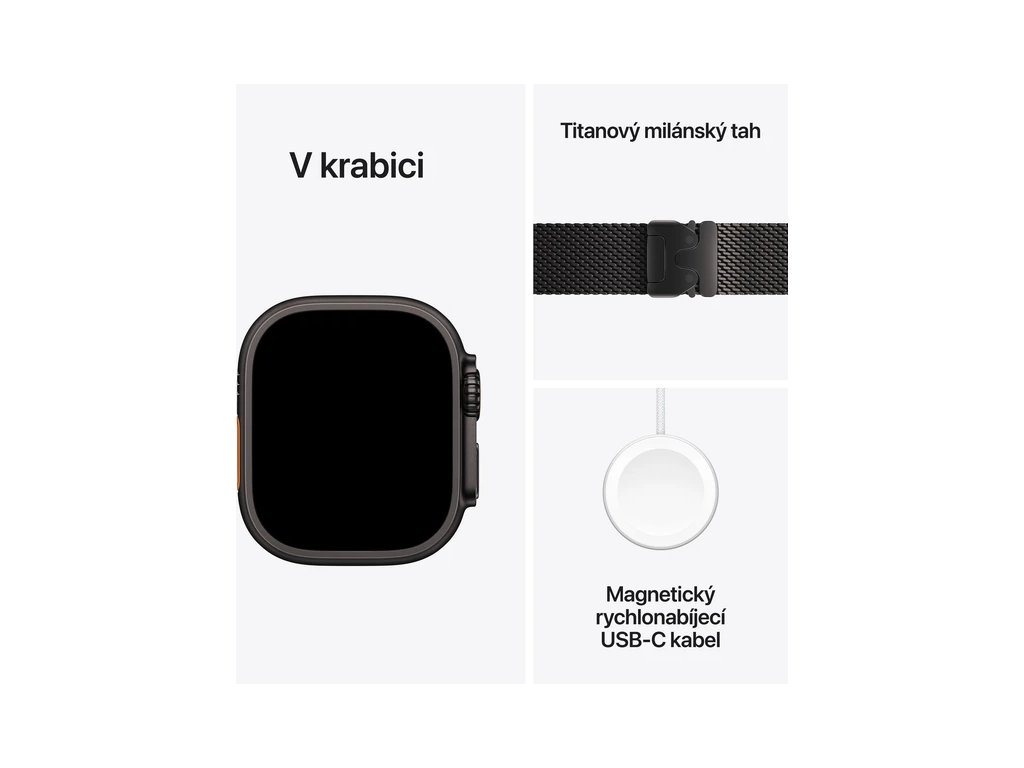 Apple Watch Ultra 3 (2025) 49mm Černý titan s černým titanovým milánským tahem S