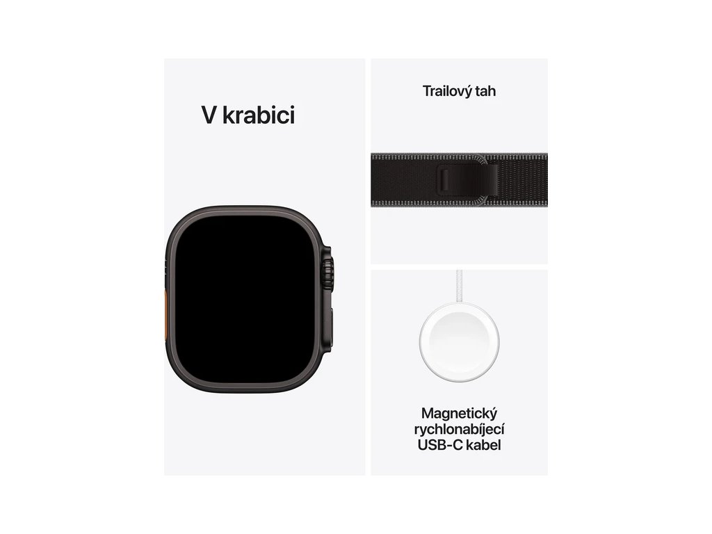 Apple Watch Ultra 3 (2025) 49mm Černý titan s černým/uhlovým trailovým tahem S/M