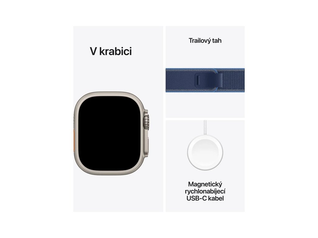 Apple Watch Ultra 3 (2025) 49mm Přírodní titan s modrým/jasně modrým trailovým tahem S/M