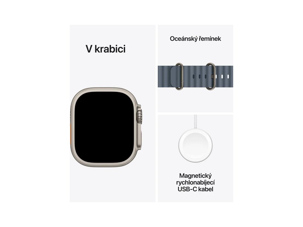 Apple Watch Ultra 3 (2025) 49mm Přírodní titan s ocelově modrým oceánským řemínkem
