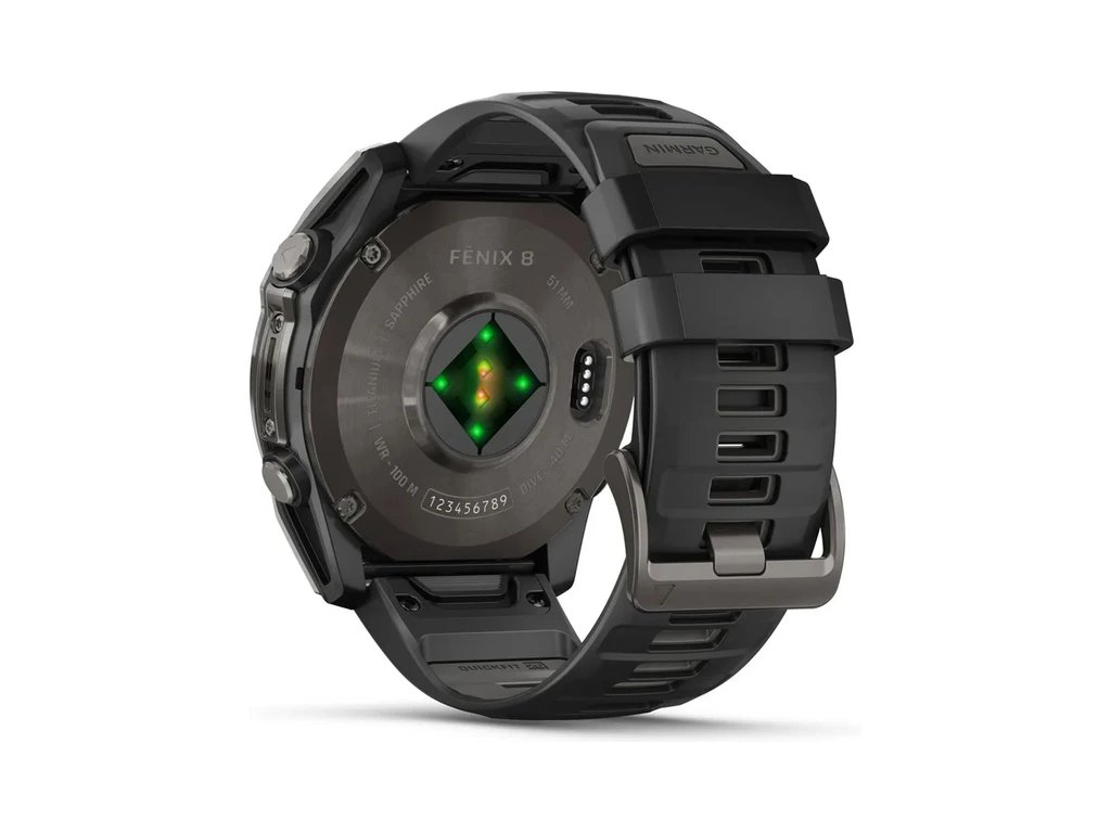 Hodinky Fenix 8 jsou vybaveny vysoce odolným AMOLED displejem chráněným safírovým tvrzeným sklem a voděodolností do 40 metrů. Výdrž baterie až 29 dní v režimu zhasínání displeje zajišťuje nepřetržité sledování aktivit a zdravotních dat bez nutnosti častého dobíjení.