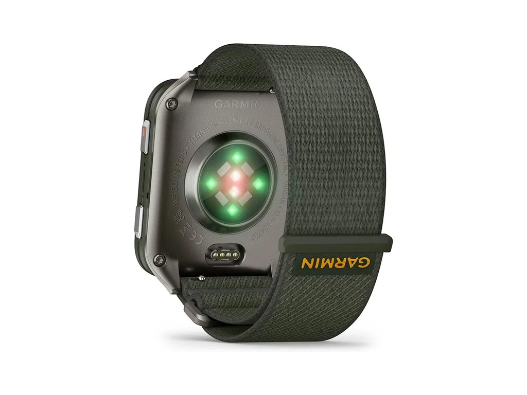 Garmin Venu X1 zaujme hned na první pohled svým 2” AMOLED displejem s vysokým rozlišením a ochranným safírovým sklíčkem, které zaručuje skvělou čitelnost i odolnost vůči poškrábání. Tělo hodinek je vyrobeno z prémiových materiálů – zadní strana je titanová, což zajišťuje odolnost při zachování nízké hmotnosti. Díky tloušťce jen 8 mm a váze cca 40 g jsou ideální pro celodenní nošení.