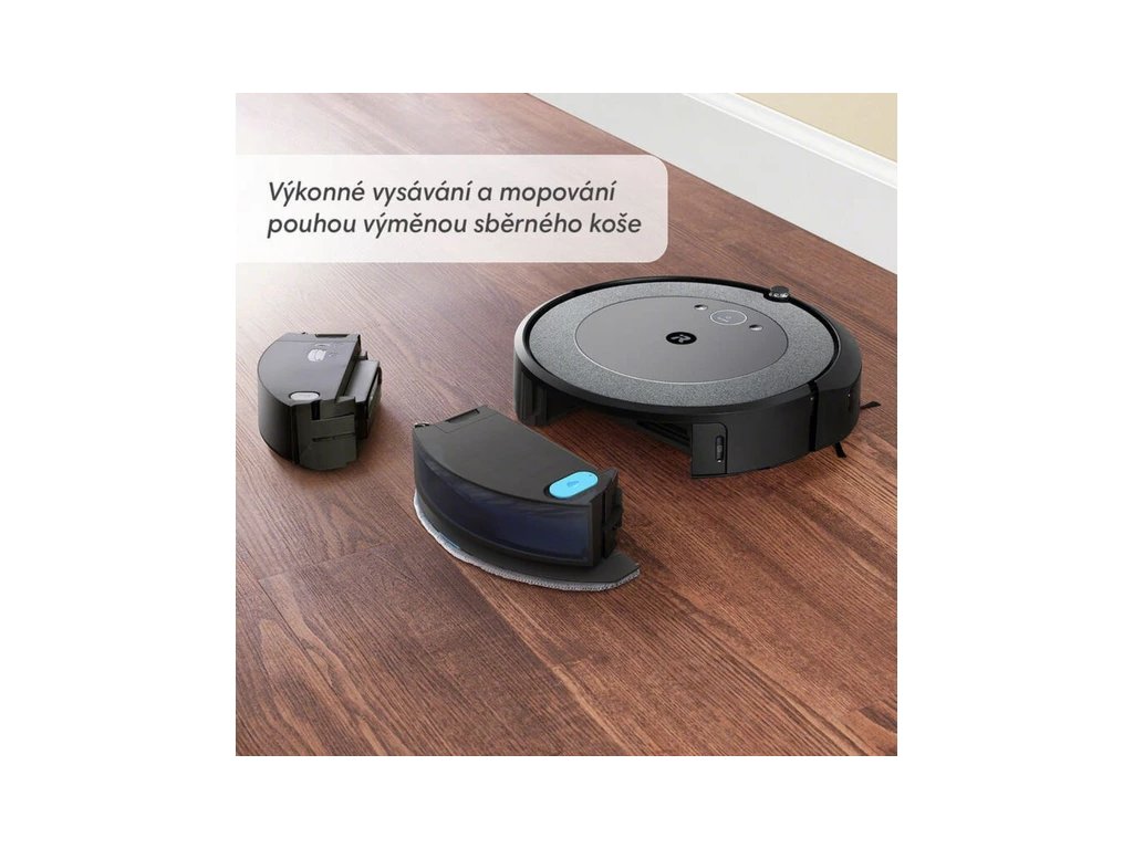 Vysaje hluboko usazený prach a?nečistoty 10x větší sací silou. Bočním kartáčkem uklidí podél stěn a v rozích a gumové kartáče se přizpůsobí různým typům podlah a zabrání namotávání vlasů. Díky systému vytírání zanechá podlahu lesklou a?čistou. Užijte si silný výkon a zářivý lesk s vysavačem Roomba Combo™ i5.