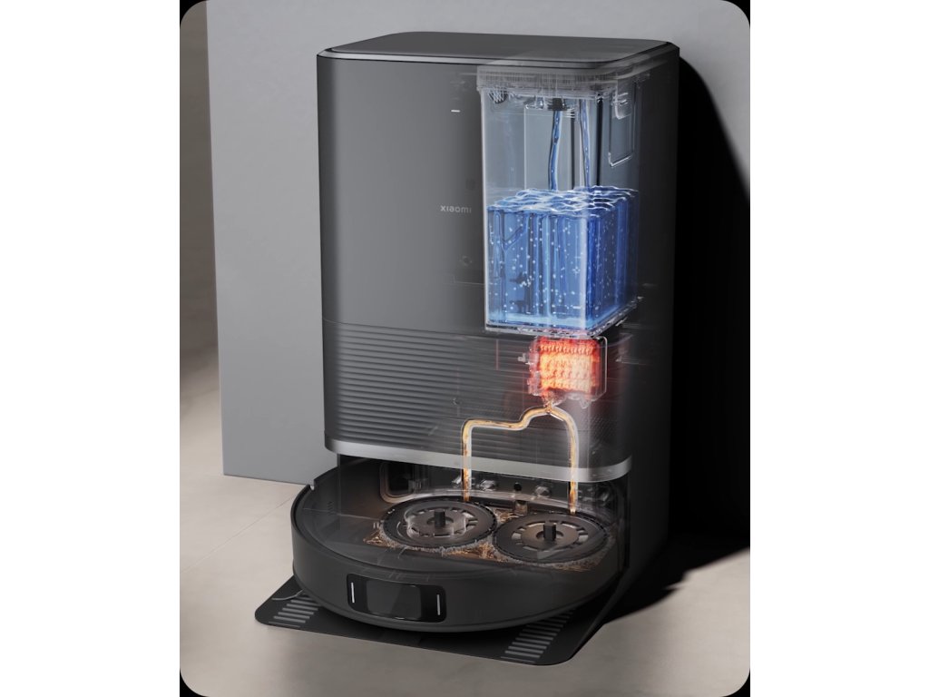 Robot není pouze vysavač, ale také mop. Funkce automatického mopování zahrnuje mytí mopu po úklidu a jeho následné vysušení horkým vzduchem. Tím je zajištěno hygienické používání a připravenost na další úklid bez nutnosti manuálního čištění. Mopovací systém efektivně odstraňuje skvrny a nečistoty z tvrdých podlah, což šetří váš čas i námahu.